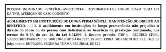 Portanto, o requerente que se encontre em condição de internação ou acolhimento em instituição de longa permanência pode receber o Benefício de Prestação Continuada, desde que preencha os requisitos previstos em lei. Vejamos decisão recente sobre o tema: