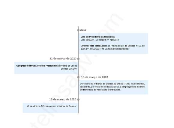 Poucos dias depois, o Ministro do Tribunal de Contas da União (TCU), Bruno Dantas, suspendeu a ampliação do alcance do BPC, alegando a necessidade de indicação da fonte de custeio para que tal mudança seja válida. Ocorre que, em 18/03/2020, tal suspensão foi revogada pelo Plenário do próprio TCU.