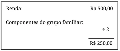 Agora imagine a mesma situação do exemplo 2. Porém a pensão no valor de R$ 500,00, sendo novamente a única fonte de renda da família.