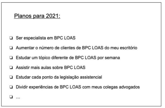 O que você deseja para sua carreira com o BPC LOAS em 2021?